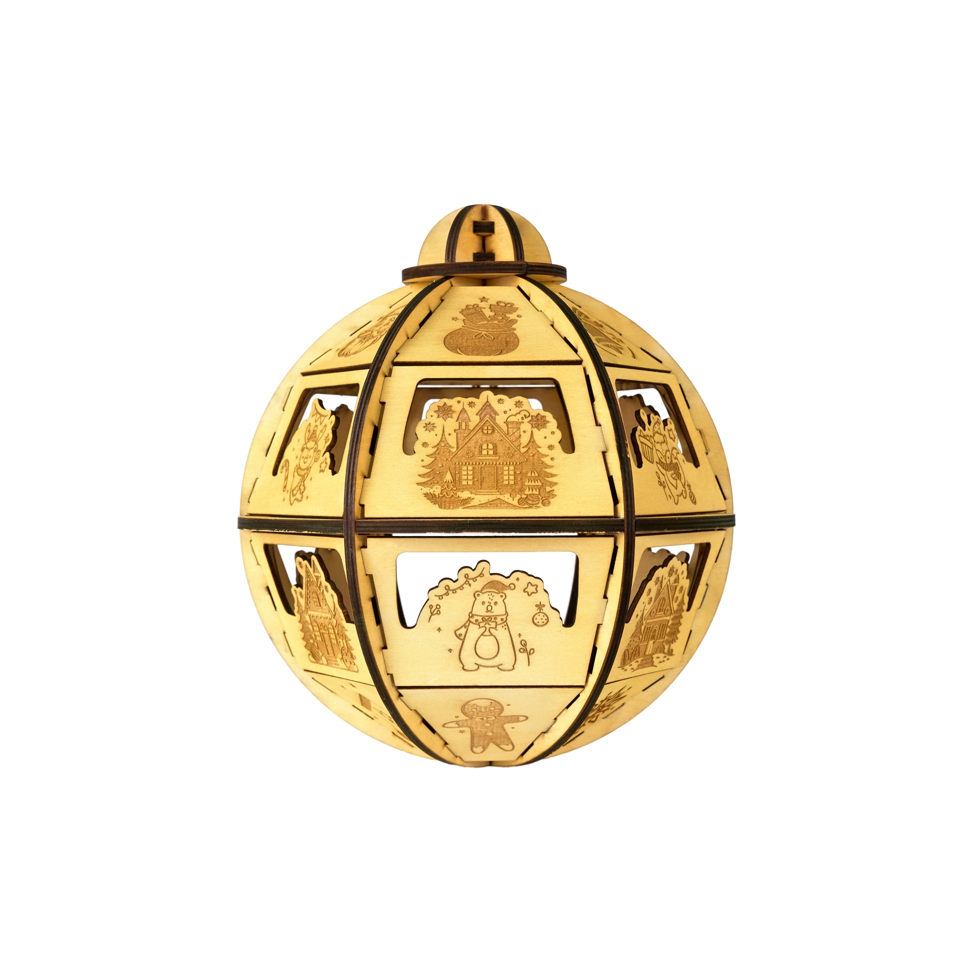 Wooden Christmas bauble: Intricate cutouts (bear, gingerbread), festive motifs—3D decorative ornament & charming holiday gift.