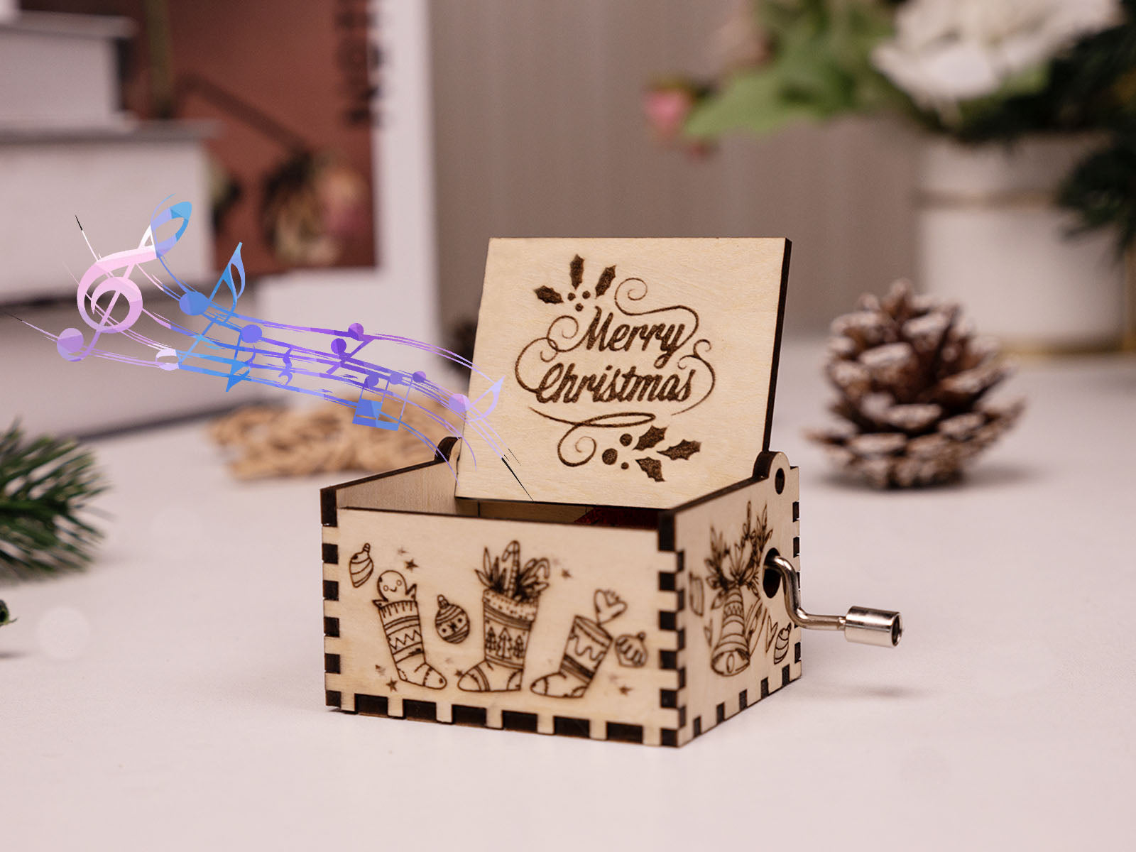 Create a magical ambiance with our Christmas Music Box. Designed to be used with a hand-cranked music box movement, it plays delightful melodies that fill your home with the joy of the season.