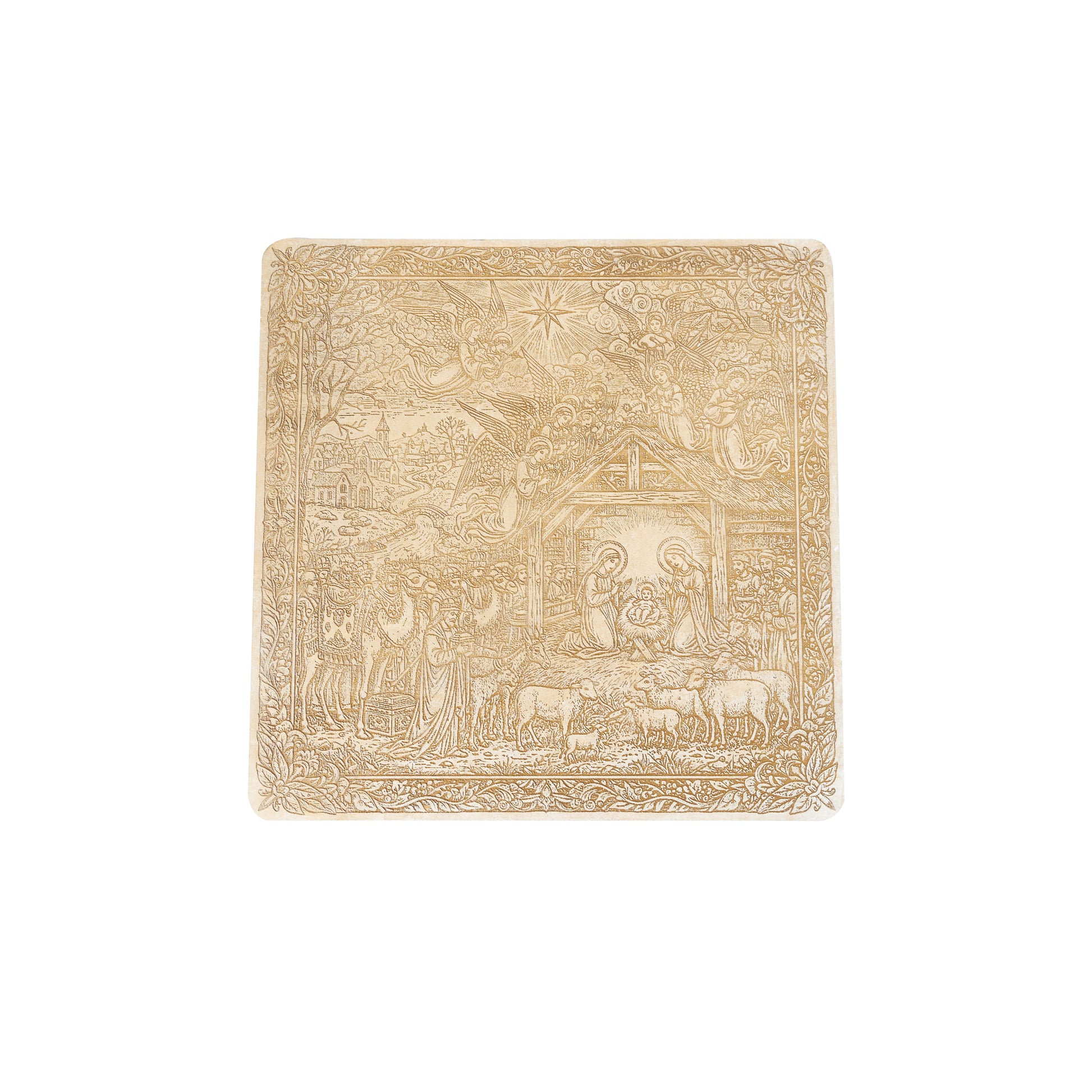 Wooden Festive Engraving: Scenic design with figures & animals, stylish holiday decor & gift.