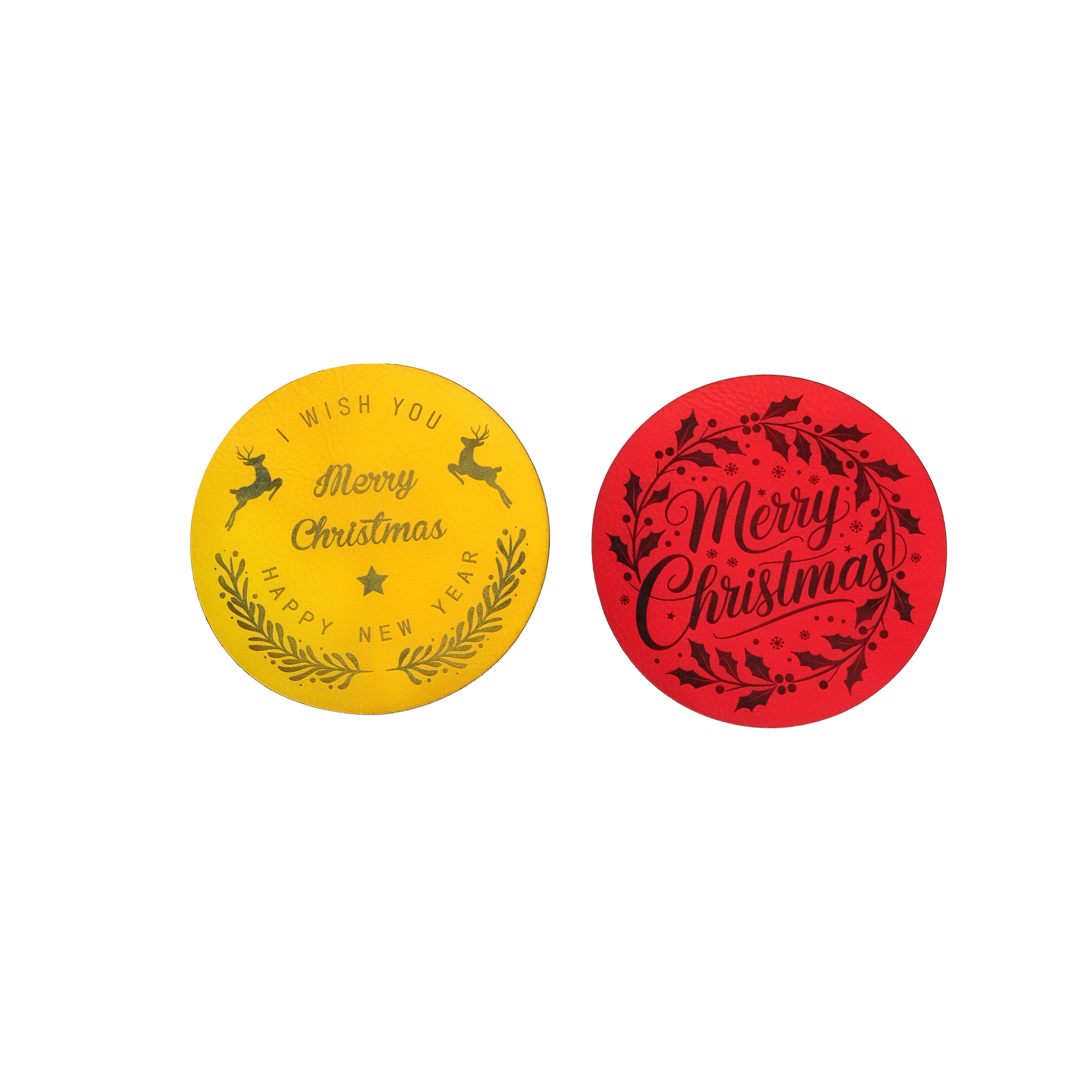 Festive Christmas coasters: "Merry Christmas" & "Happy New Year" designs—decorative tableware, charming holiday gift set.
