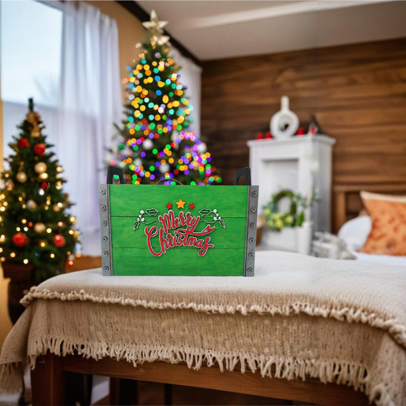 Beautifully crafted wooden storage box with festive laser-cut Christmas designs. Perfect for organizing gifts, ornaments, or holiday essentials.