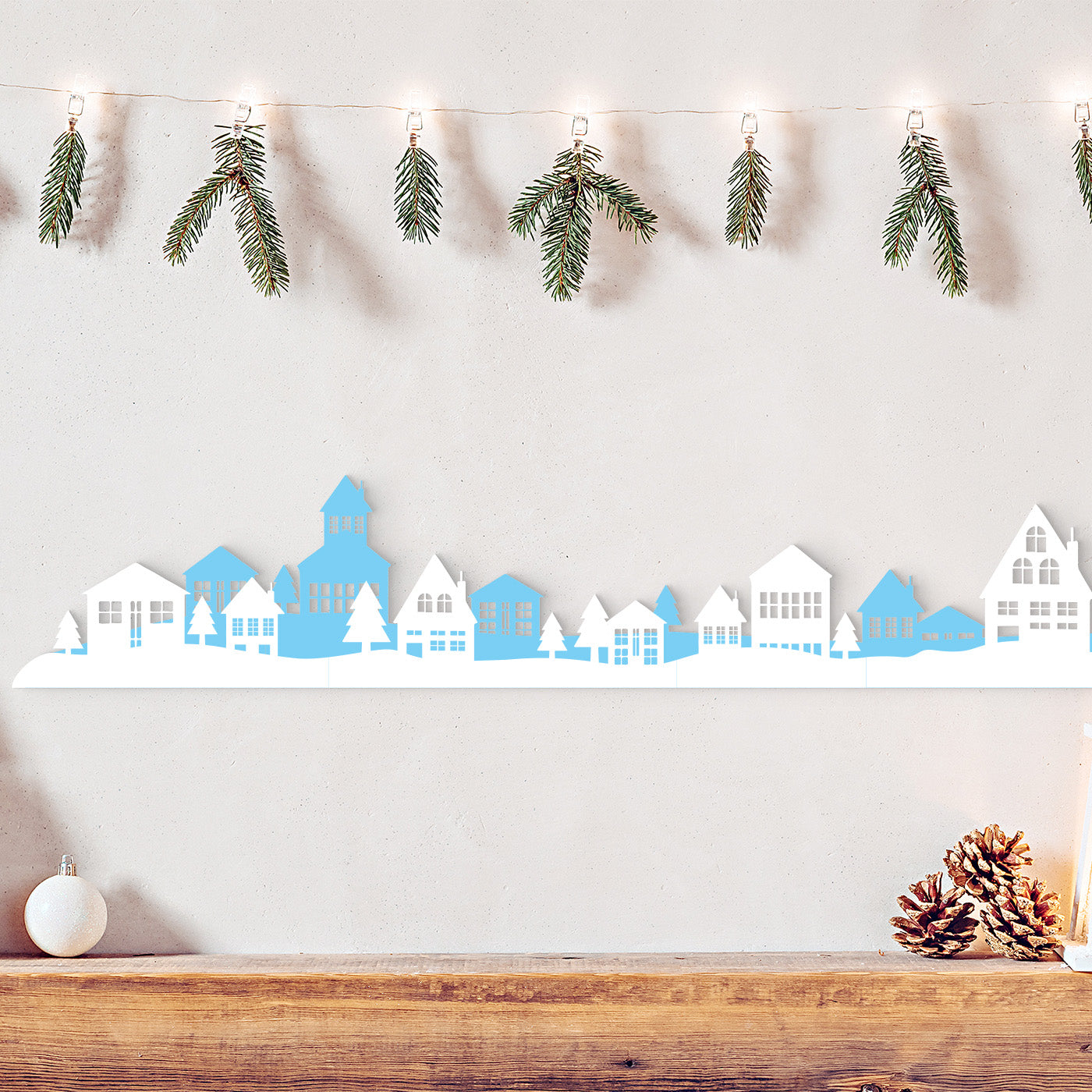 Laser-cut extended silhouette of a charming Christmas town. Perfect for festive mantel displays, windows, or table centerpieces!