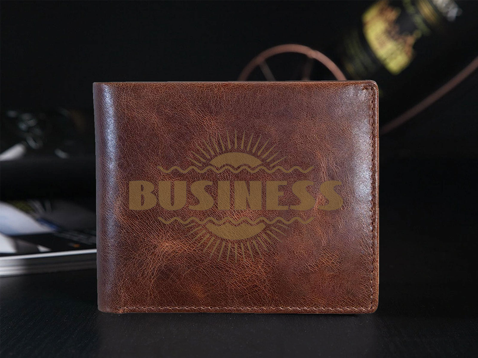 Elevate your business attire with our Professional Edge Engraved 'Business' Leather Wallet. Crafted from high-quality leather and featuring a sleek engraving, this wallet exudes sophistication and professionalism. With its well-designed compartments and card slots, it offers practicality and organization for your essential financial tools. Make a lasting impression in the business world with this refined accessory.