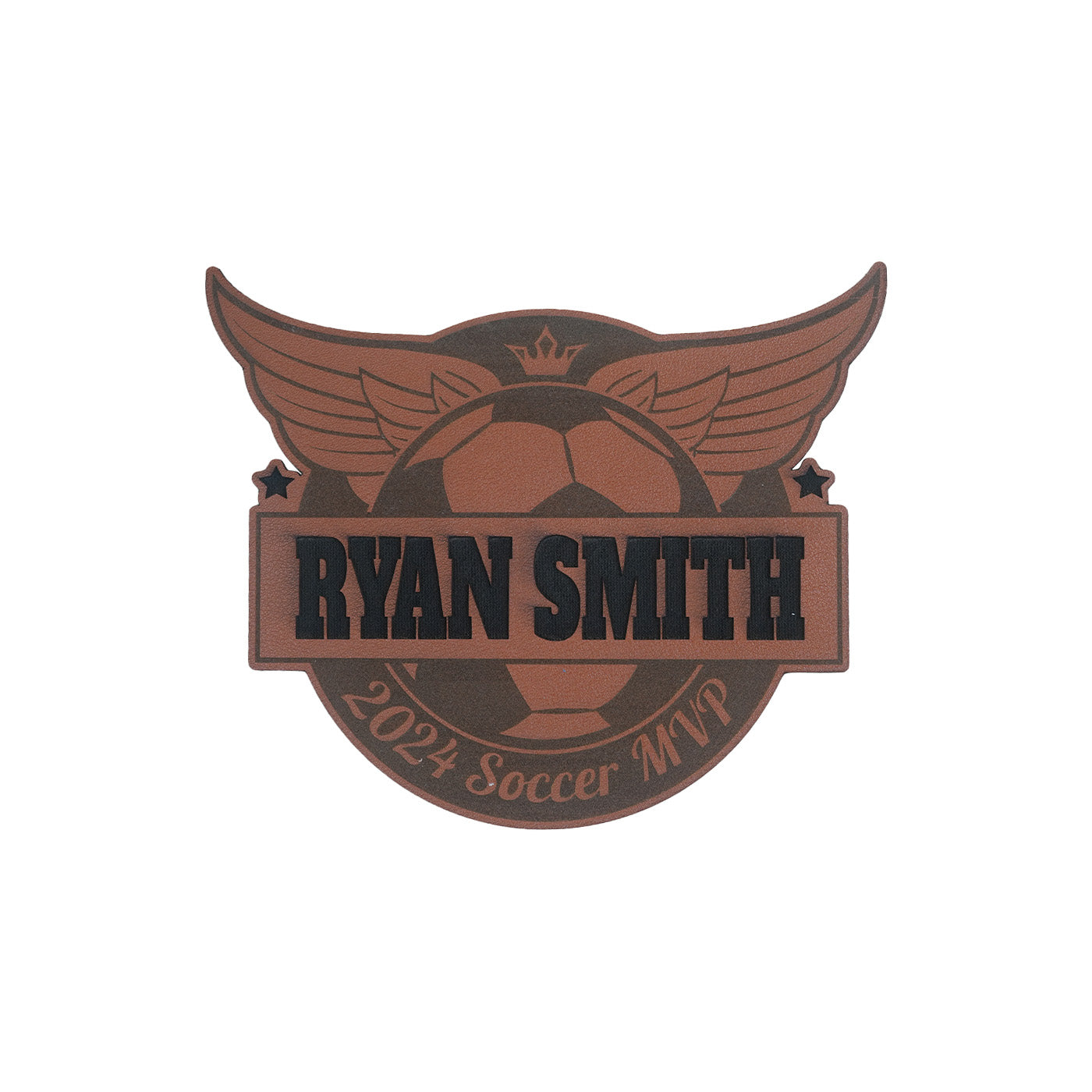 Elevate your school gear with our laser-cut Football/Soccer Leather Bag Label. Crafted from premium, durable materials, this dimensional, sport-inspired patch adds a stylish, personalized touch to backpacks, gym bags, and other accessories, allowing students to showcase their athletic interests while keeping their belongings organized and easy to identify.