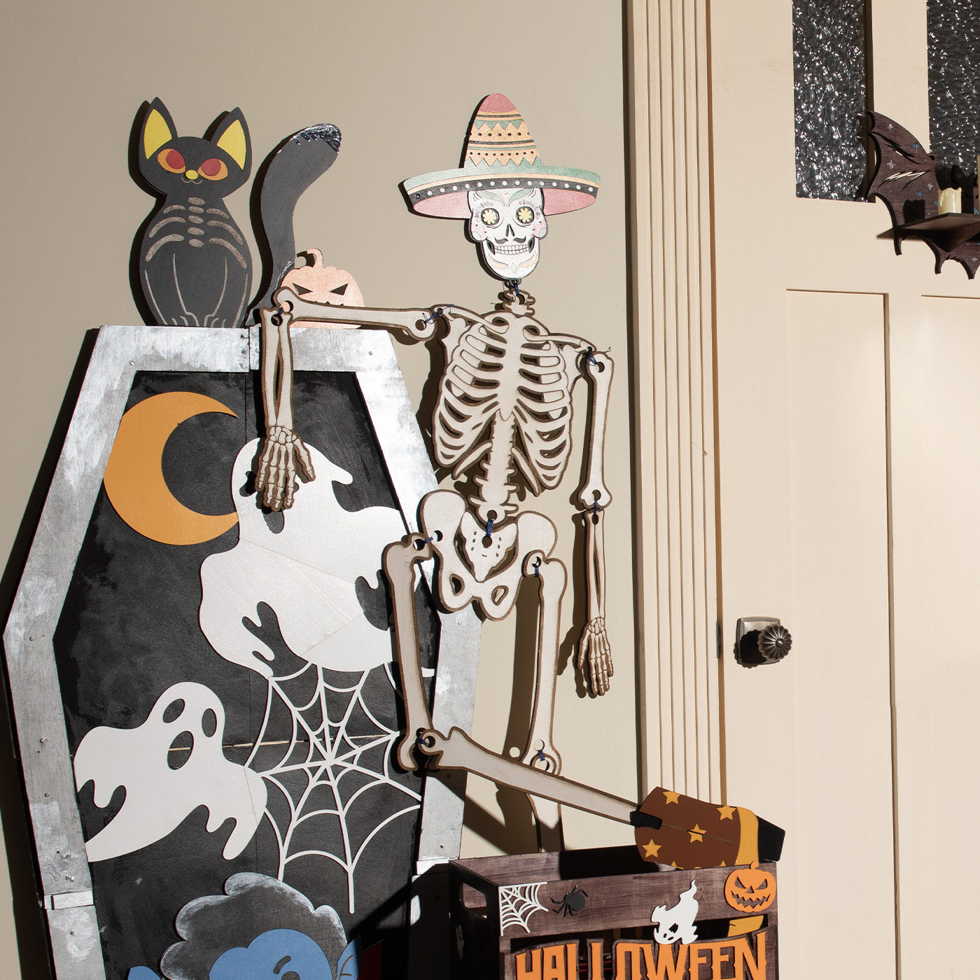 Bring spooky fun to your decor with our laser-cut Movable Big Skeleton. Perfect for Halloween, this playful figure adds a dynamic touch to your haunted house!