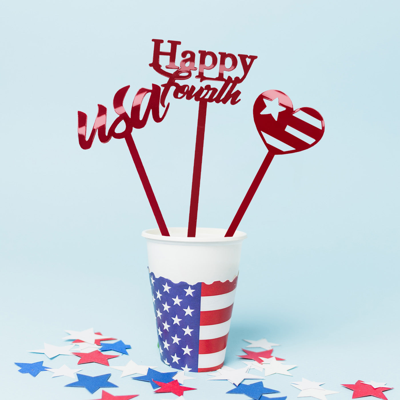 Keep your 4th of July party drinks looking festive with our laser-cut Acrylic Drink Insert Plate. Featuring a dynamic, stars and stripes-inspired design, this durable, clear accent adds a touch of patriotic flair to your holiday beverages, creating a modern, eye-catching way to serve drinks that celebrate America's independence.