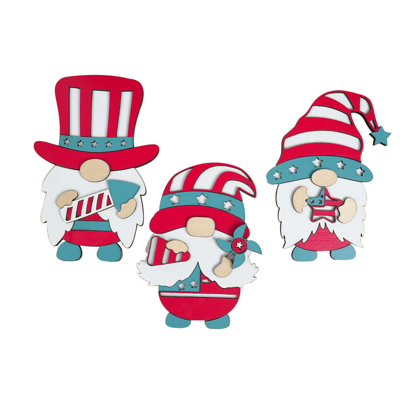 Bring a whimsical touch of Americana to your 4th of July decor with our laser-cut Wooden Gnome Decoration. Crafted from premium materials, this handmade accent features a playful, patriotic-themed design that adds a charming, one-of-a-kind accent to celebrate the nation's birthday in a fun, festive way.