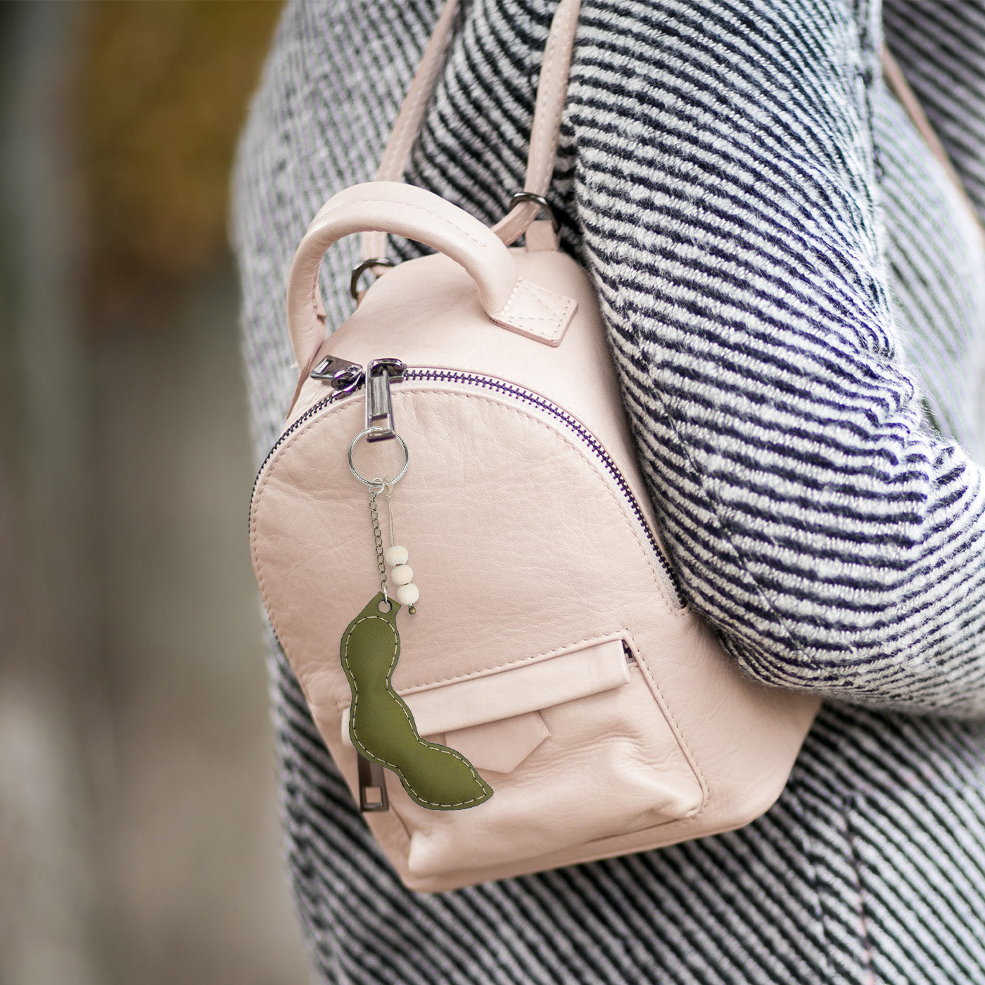Add a touch of charm to your keys with our laser-cut leather pea pod keychain hanging ornament. Unique design brings whimsy and personality to any set!