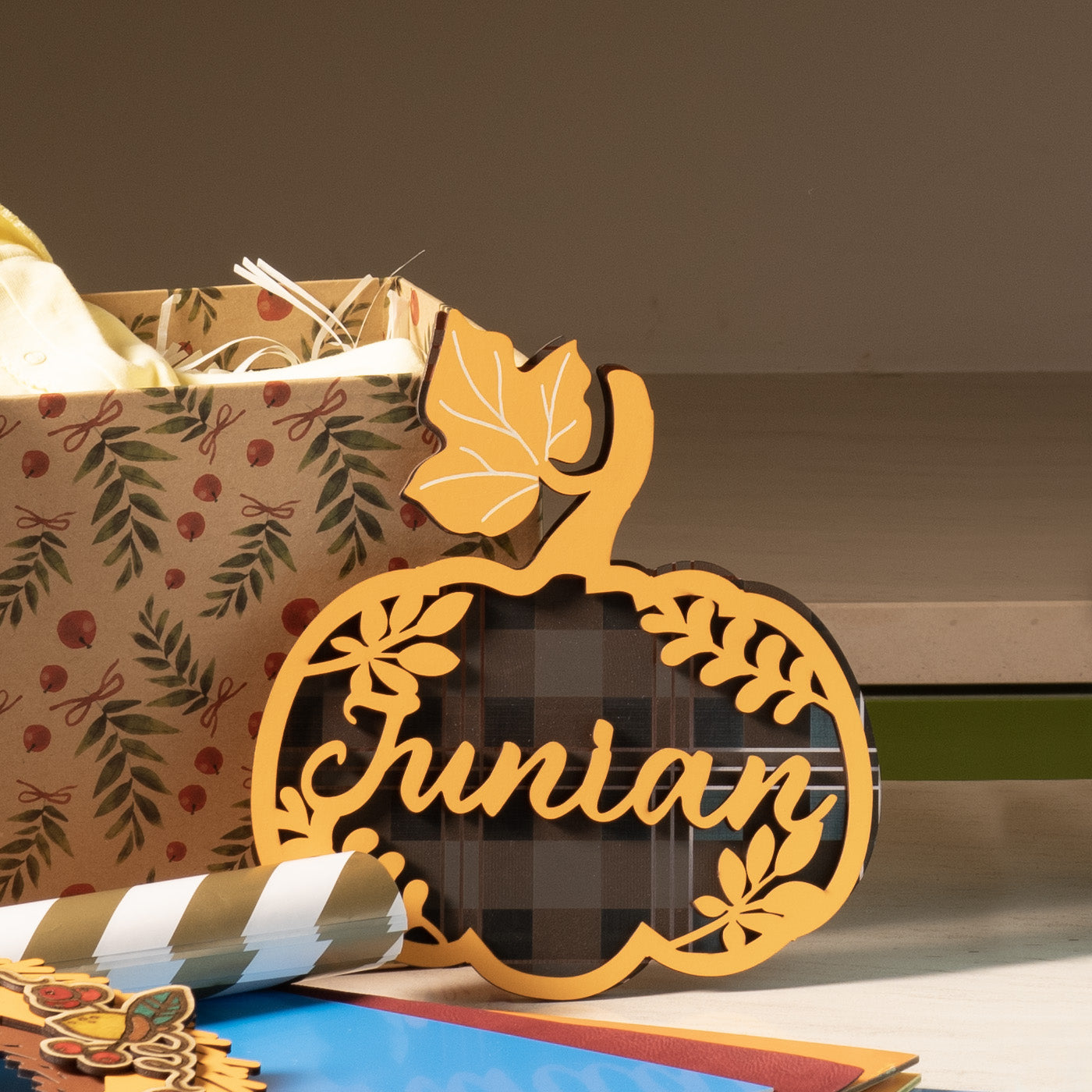 Celebrate autumn with our laser-cut Mixed Materials Wooden Acrylic Pumpkin Ornament. This unique design blends textures, adding a charming touch to your decor!