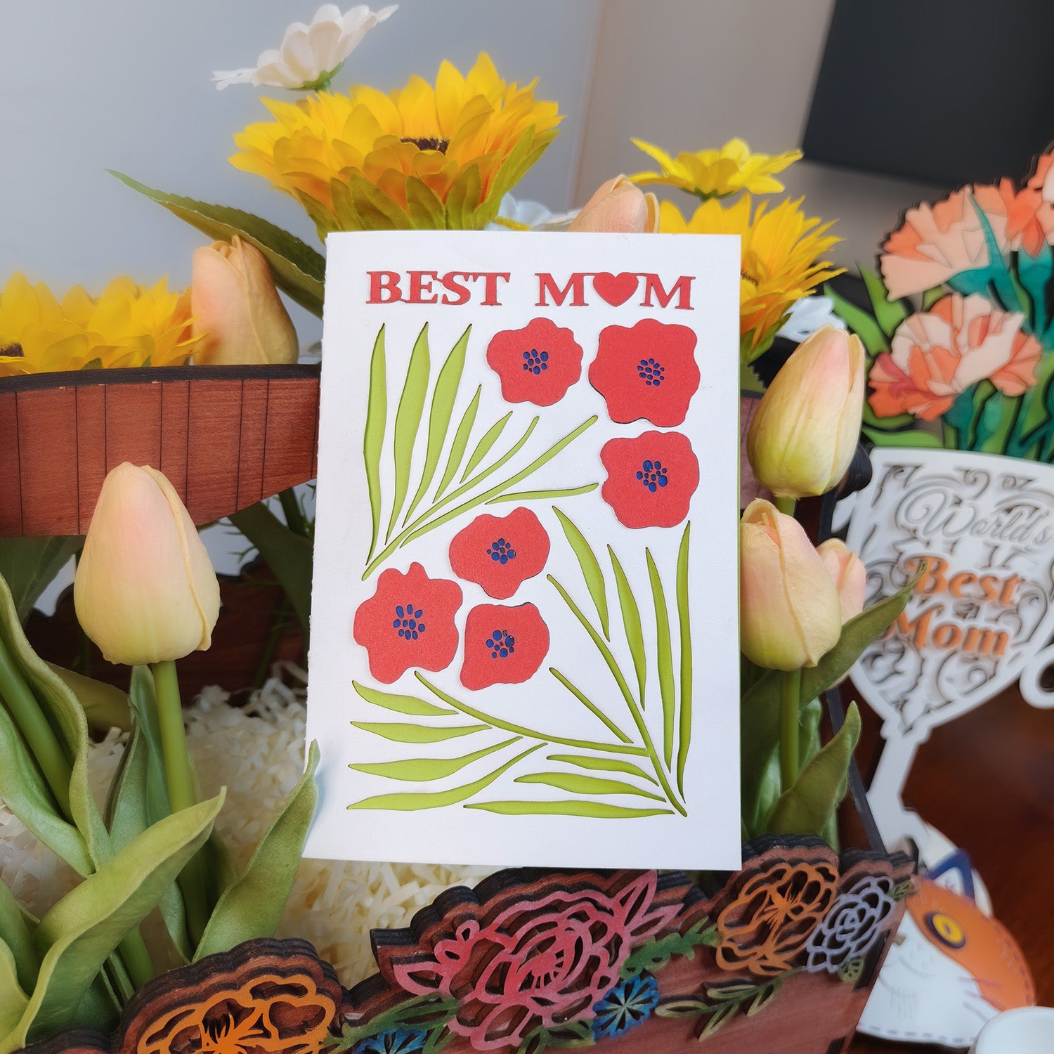 Brighten Mom's day with our Mother's Day Flower Greeting Card! Beautifully laser-cut, it’s a heartfelt way to express your love and appreciation.