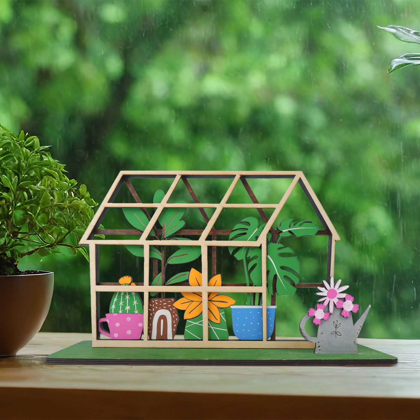 Bring nature indoors with our laser-cut Multi-Layered Greenhouse Decoration. This intricate design adds depth and charm, perfect for plant lovers and decor enthusiasts!