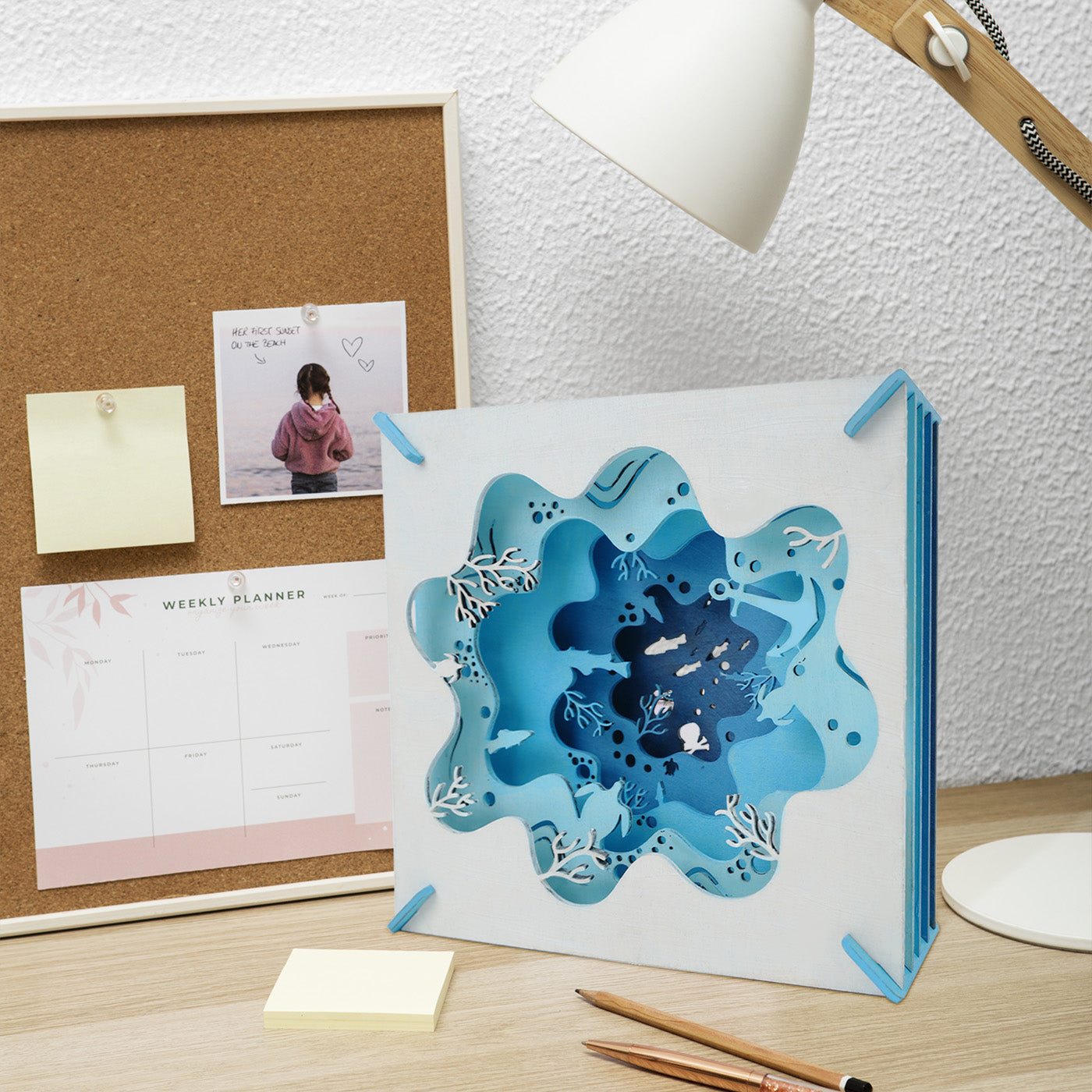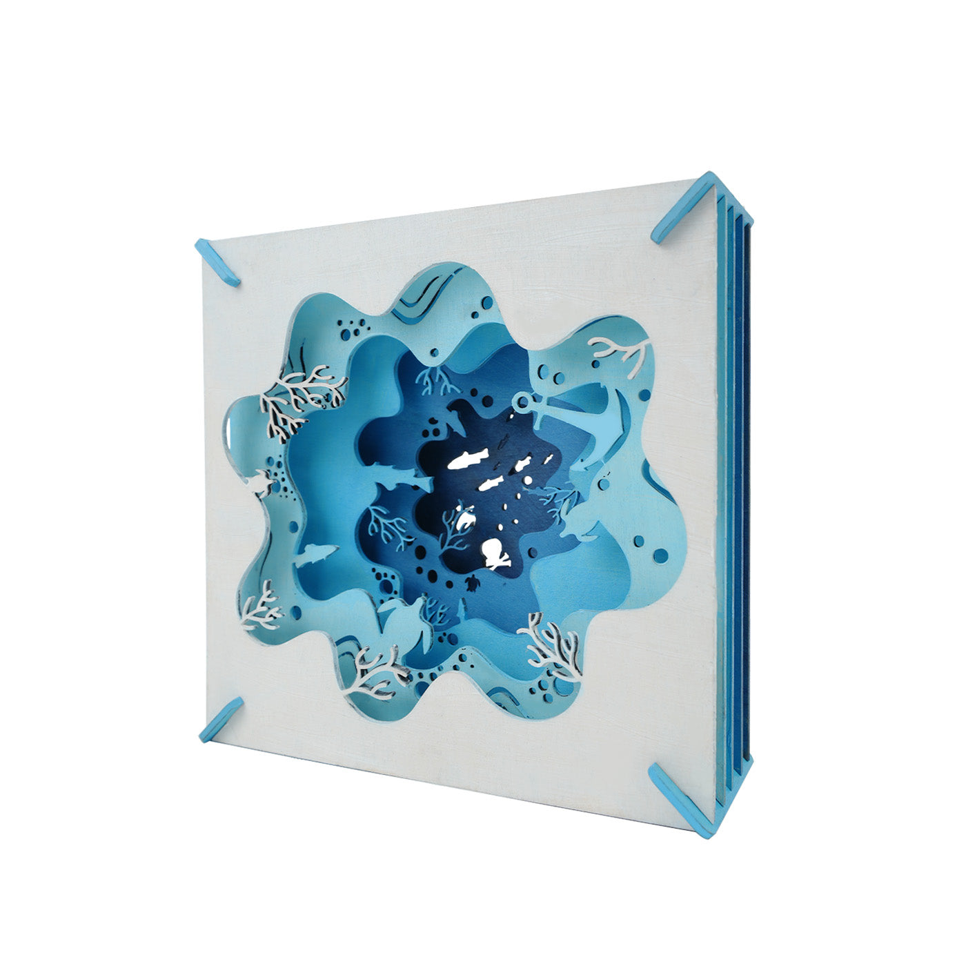 Dive into creativity with our multilayered undersea world art. This stunning, laser-cut piece features vibrant marine life, adding a captivating touch to any space.