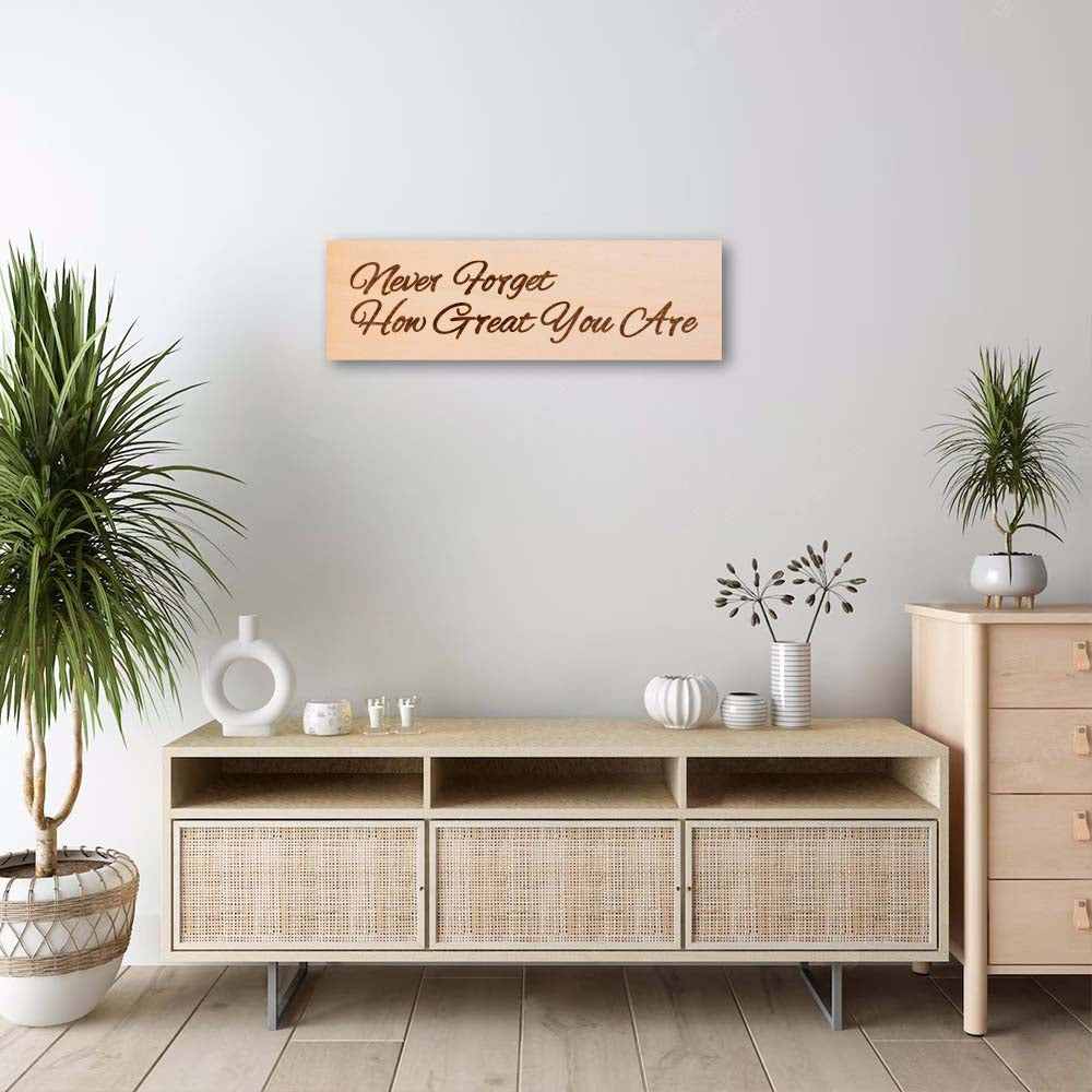 Celebrate your unique greatness with our empowering wall hanging decoration. With the uplifting message, "Never Forget How Great You Are," it serves as a constant reminder to embrace your inner strength and talents. Crafted with care, this decoration adds a touch of encouragement and positivity to any space.