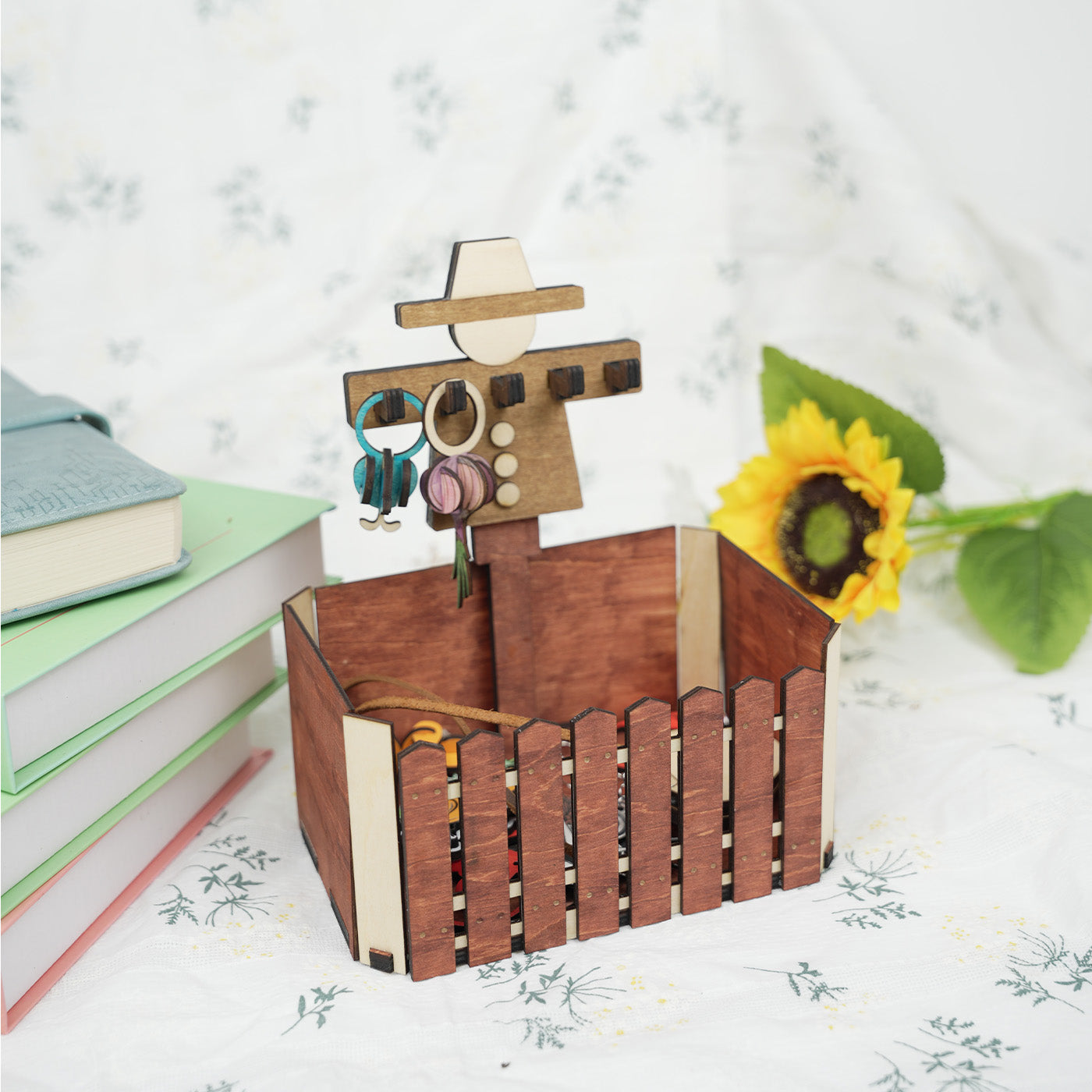 Keep your treasures safe with our charming scarecrow jewelry storage box! Laser-cut for detail, it adds a whimsical touch to your decor and organization.